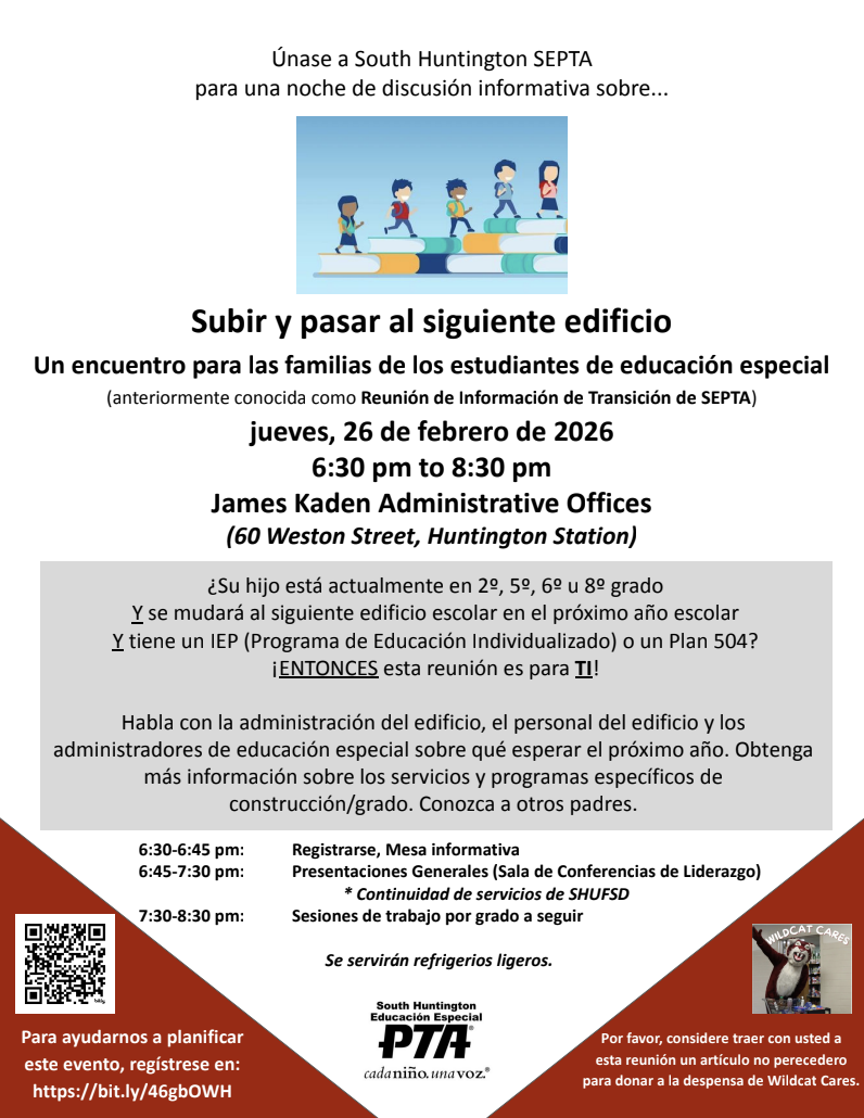 Come and join us at SEPTA's Moving Up/Moving On Transition Meeting on Thursday, February 26, 2026. Connect and discuss with school faculty members/administrators about your child's academic path for September 2026.